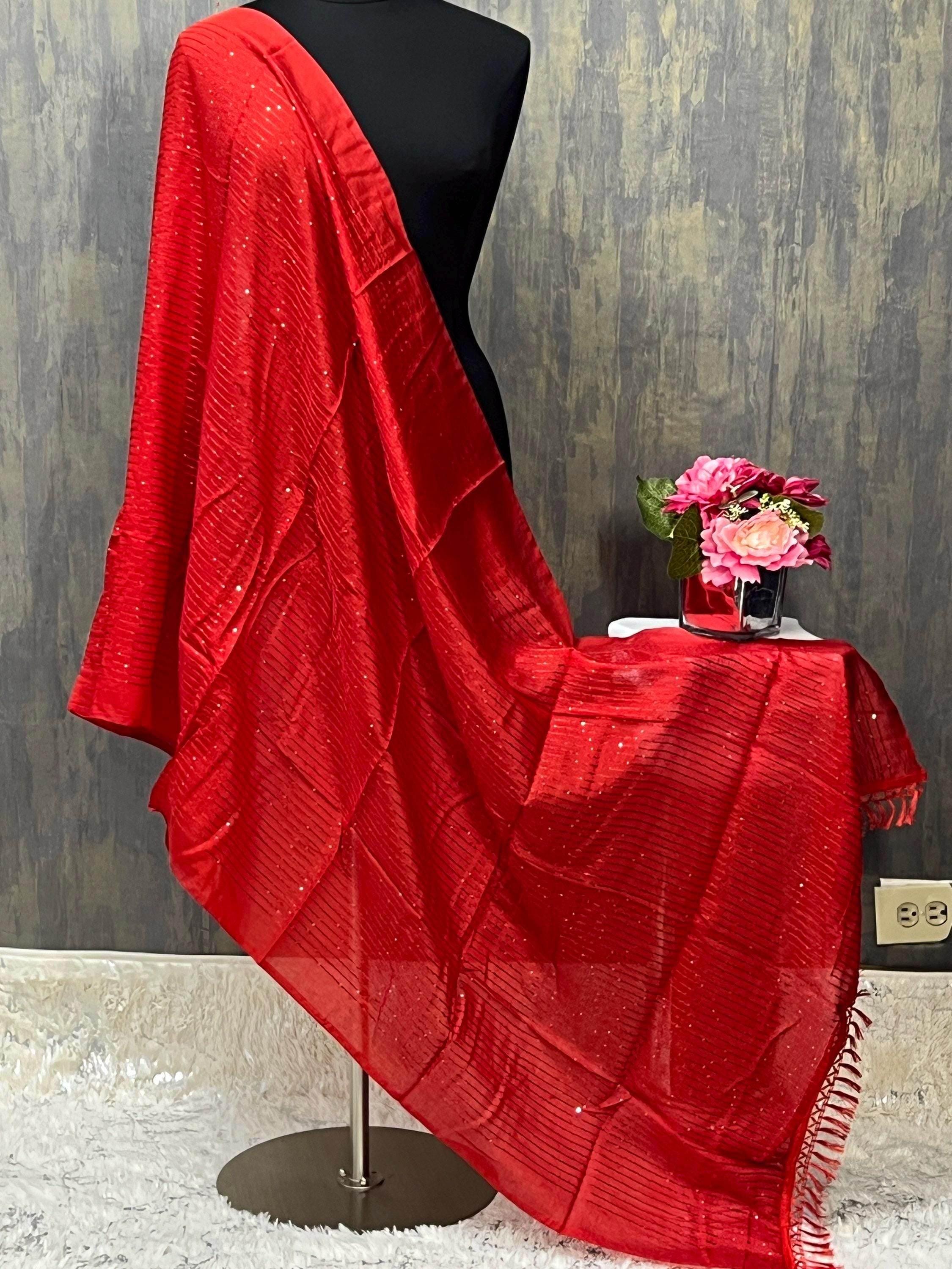 Red dupatta | sequin dupatta