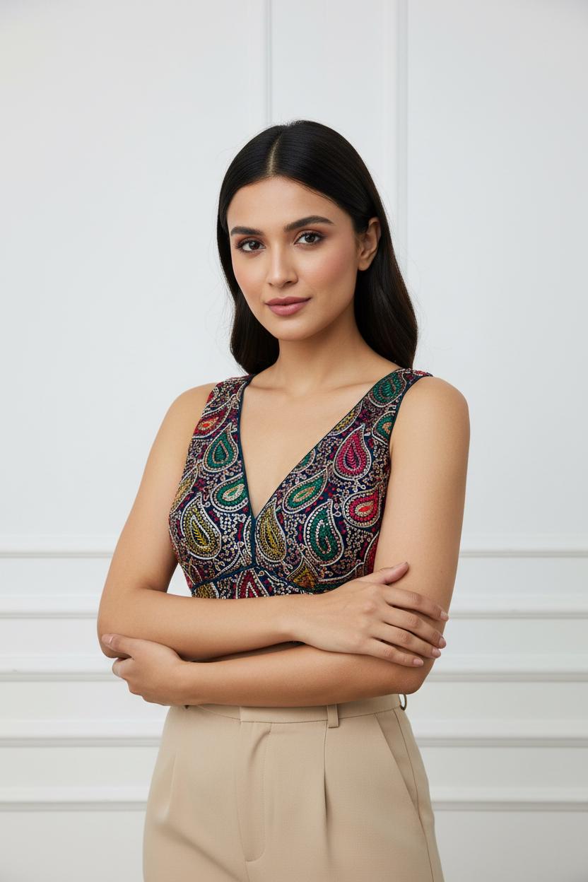 **Elegant Ready-to-Wear Blouse - Inbuilt Cups | Comfortable & Adjustable Fit**