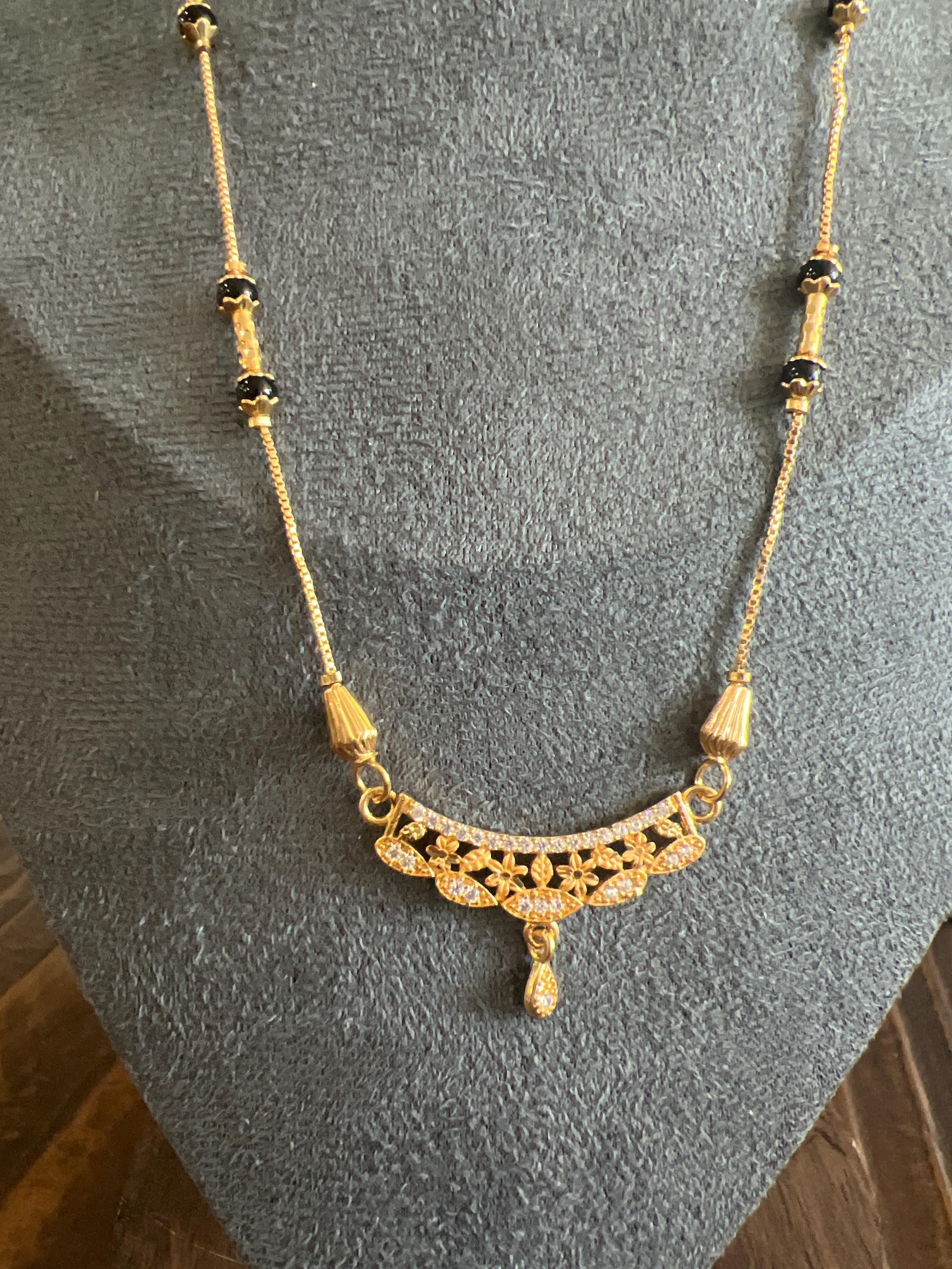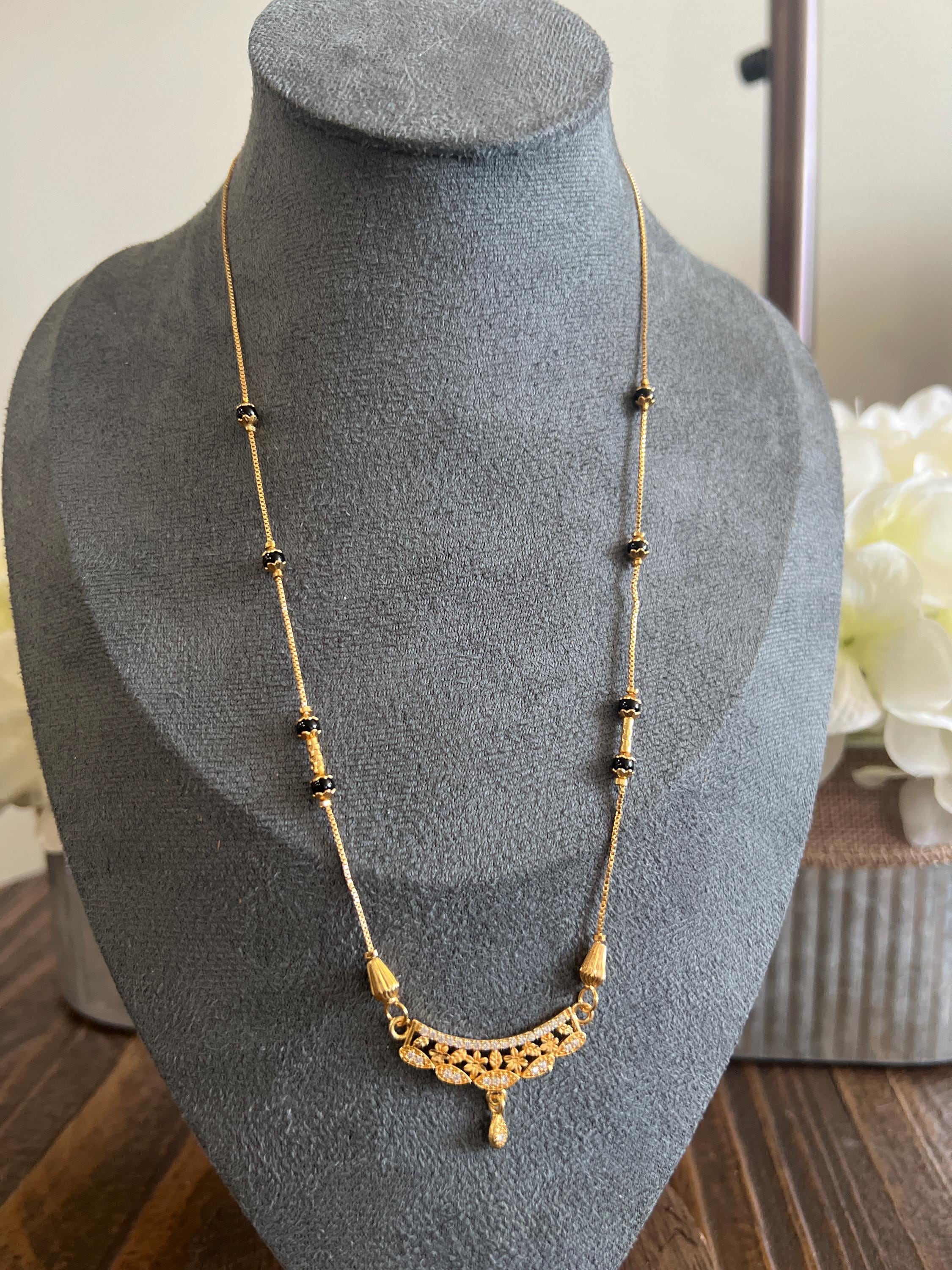 Add timeless elegance to your jewelry collection with this gold plated black beads mangalsutra-style necklace, designed for everyday wear and special occasions.