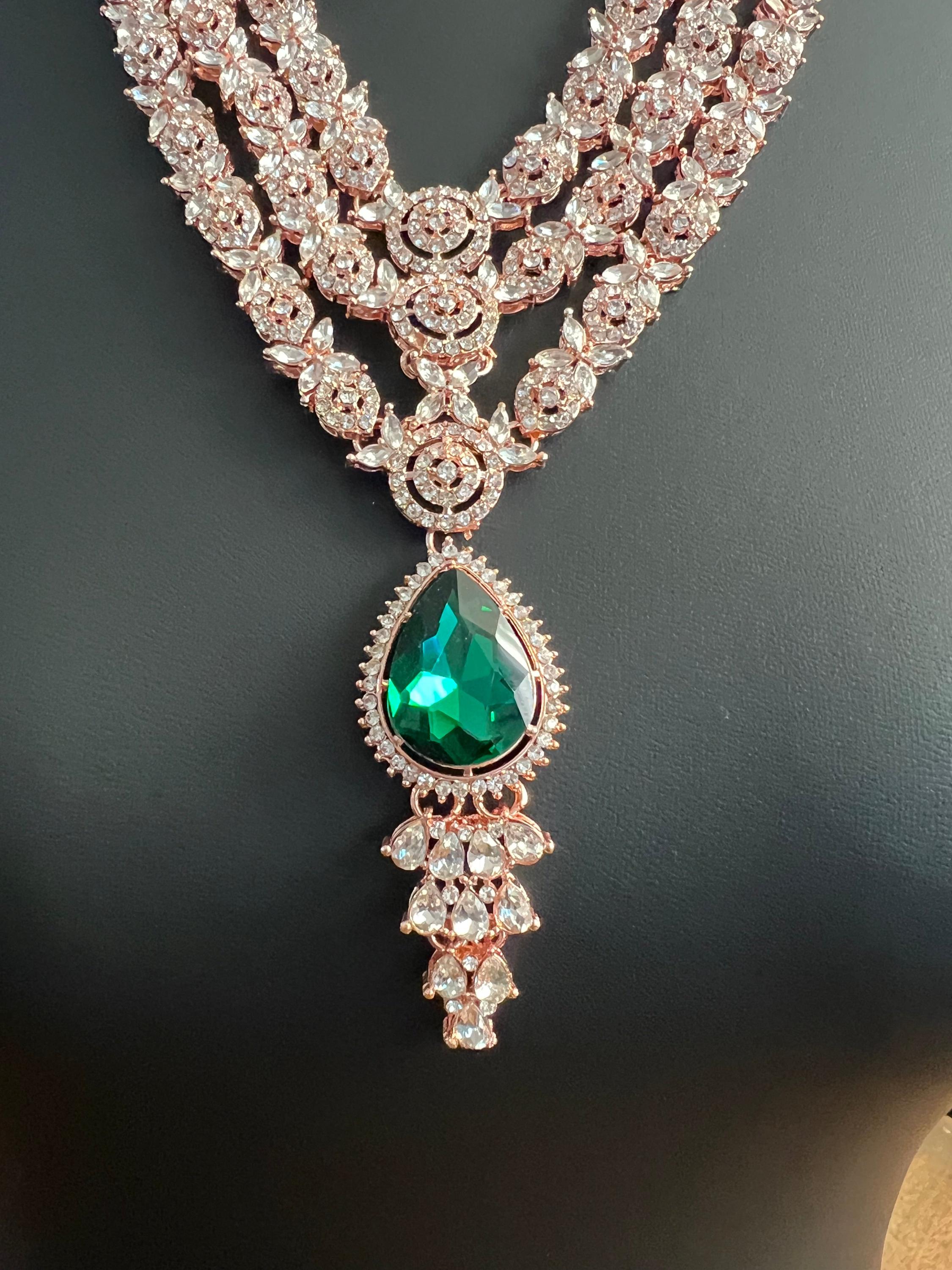 The Royal Look Rose Gold Finish Necklace Set is designed to complement traditional attire such as sarees and lehengas, enhancing the overall aesthetic with its elegant finish. This set provides an opportunity for wearers to achieve a sophisticated appearance, suitable for formal occasions or celebrations.