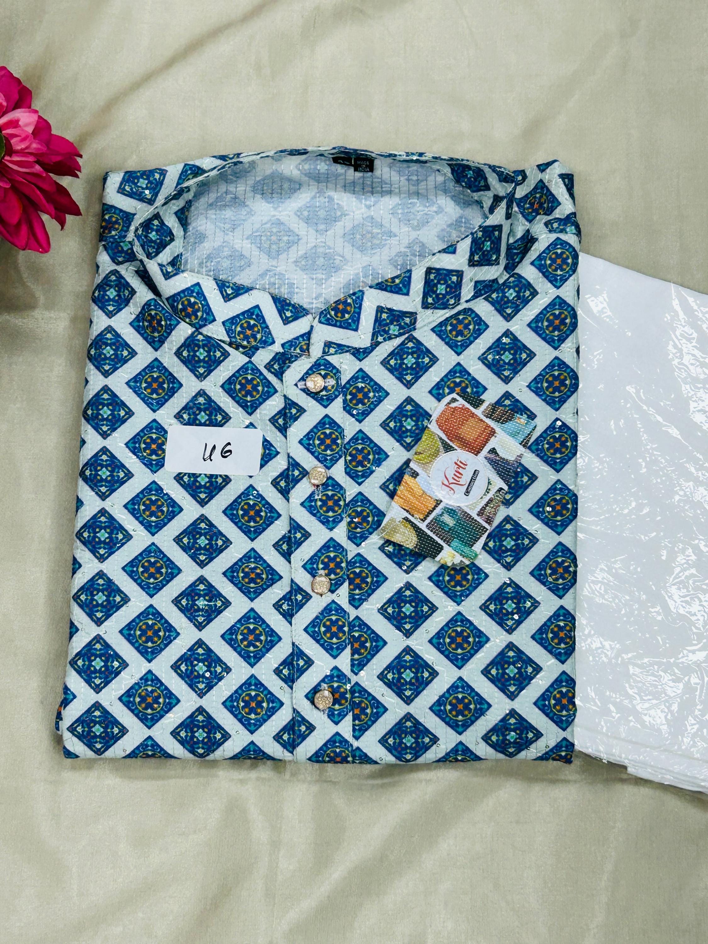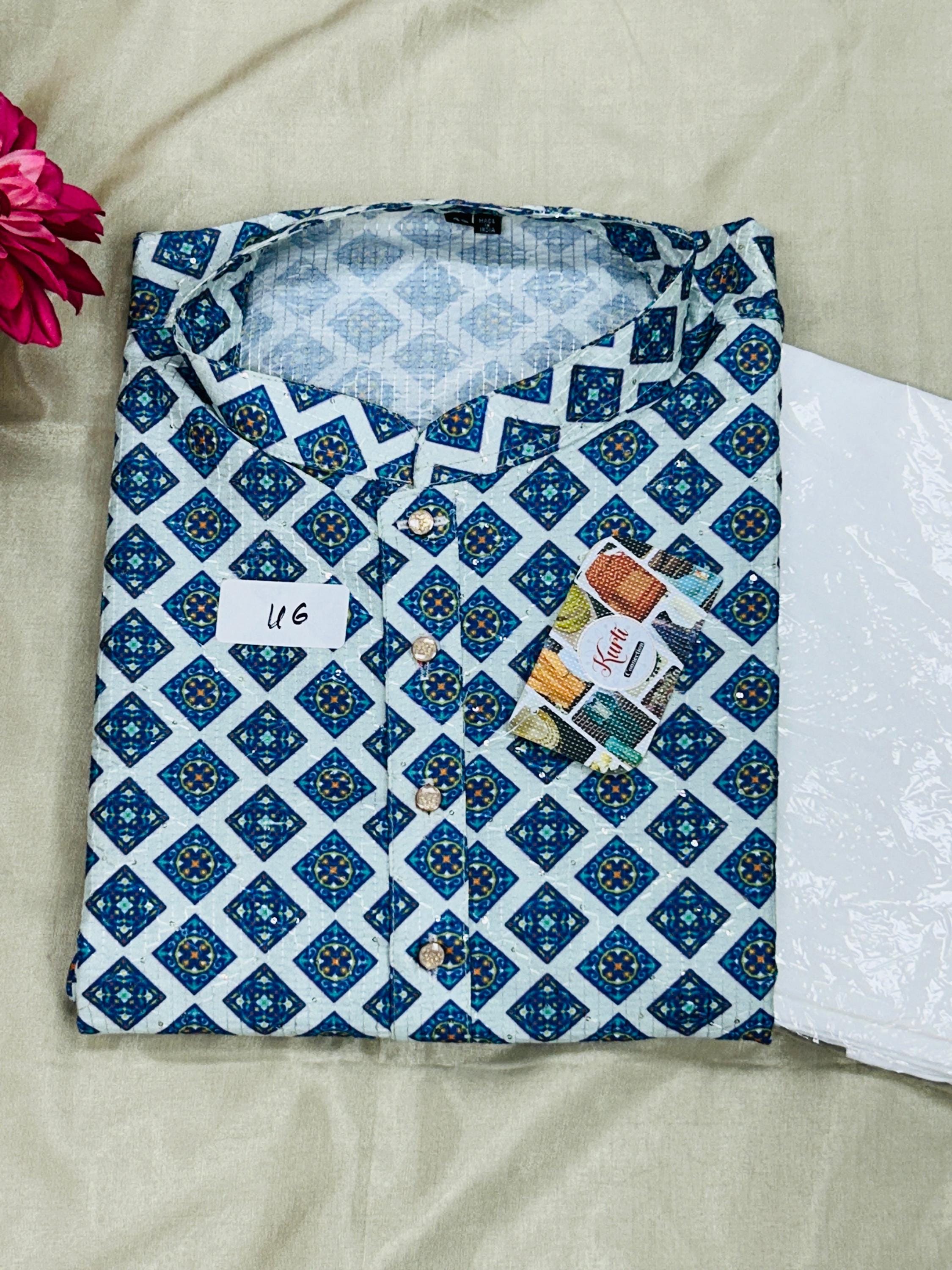 Upgrade your wardrobe with our Plus size kurta pajama set for men. Made from light and breathable fabric, this festive Mens Kurta set guarantees comfort and style. Perfect for any occasion, this set combines traditional design with modern comfort for the ultimate cultural experience.