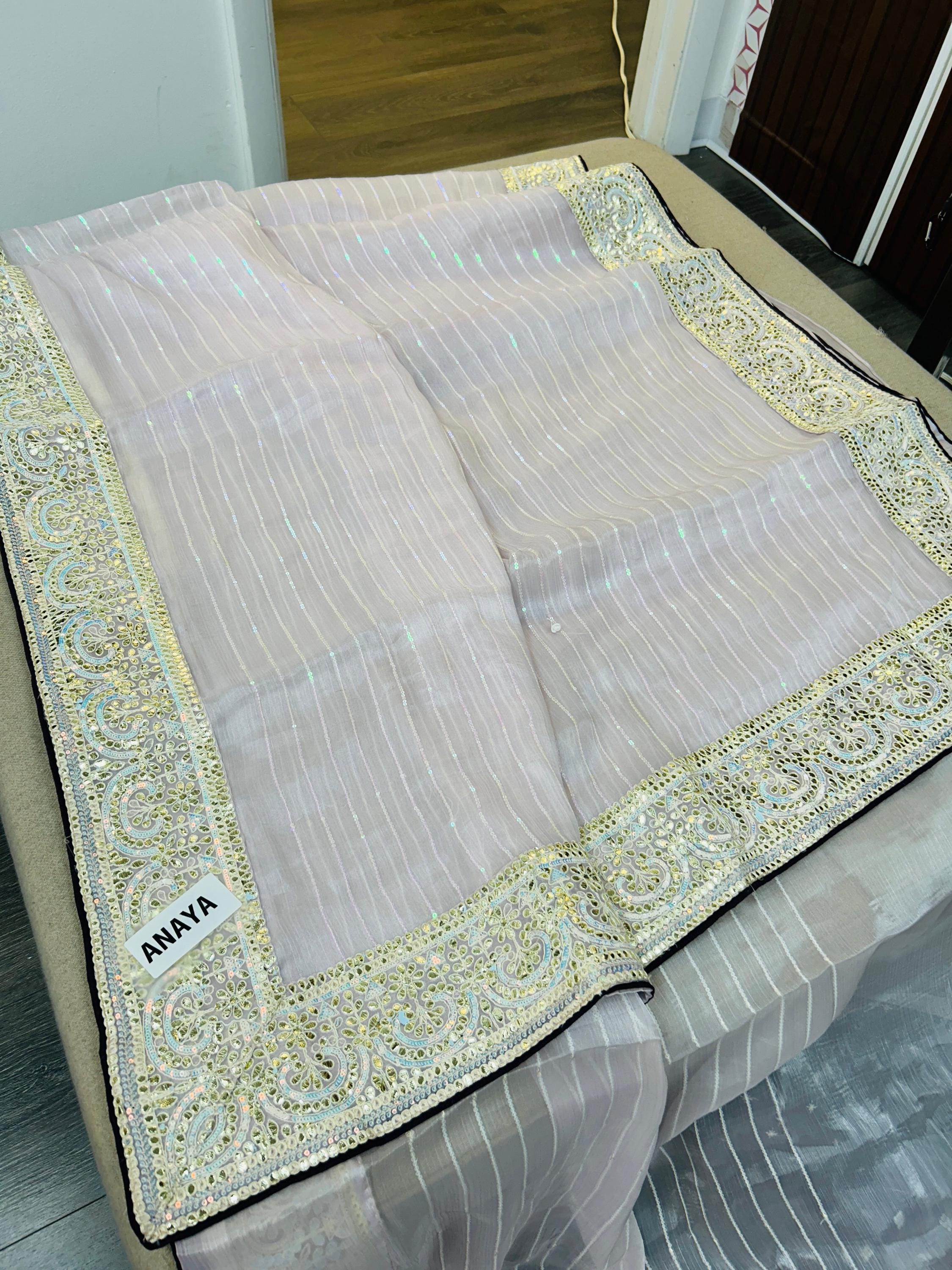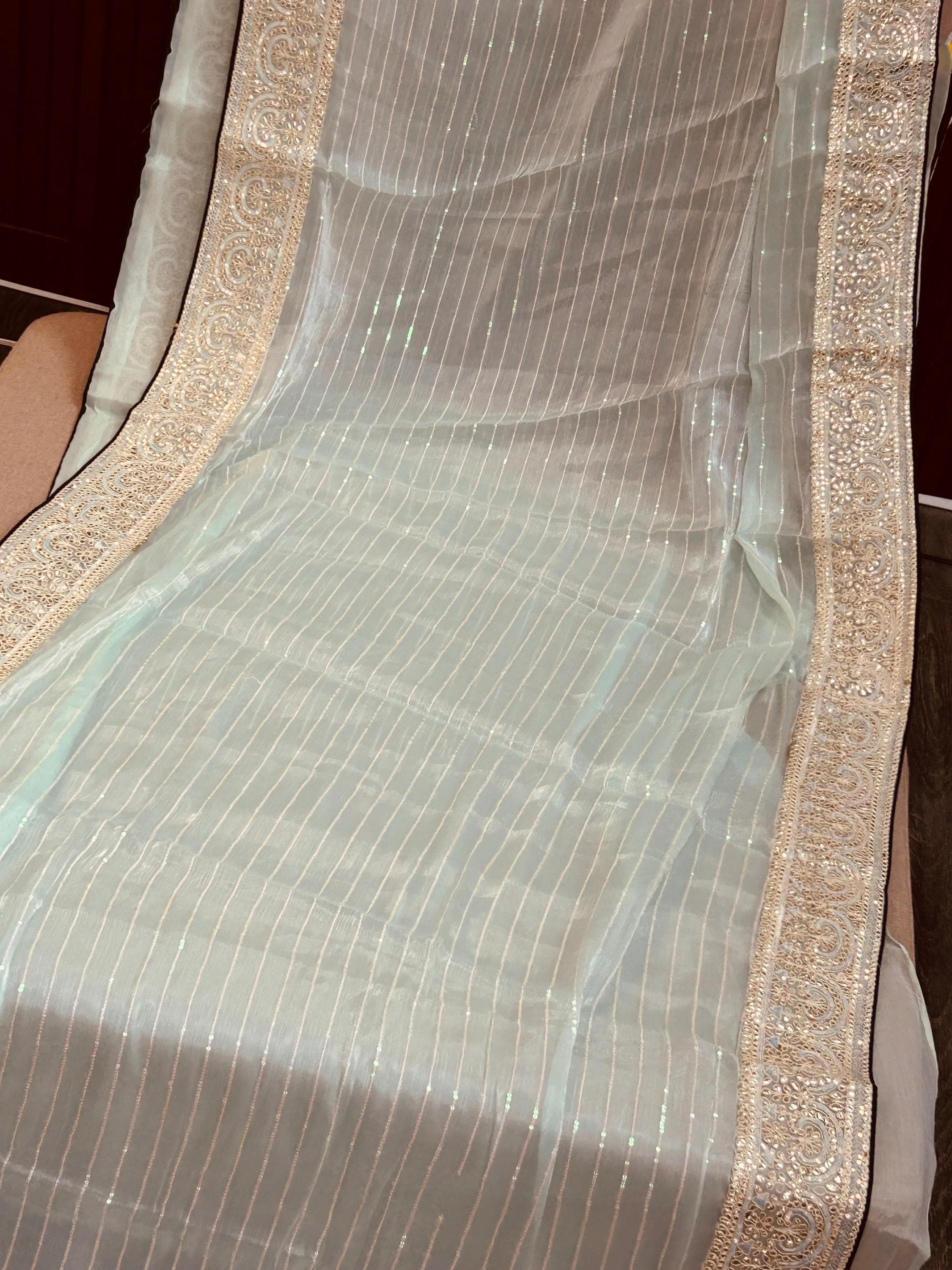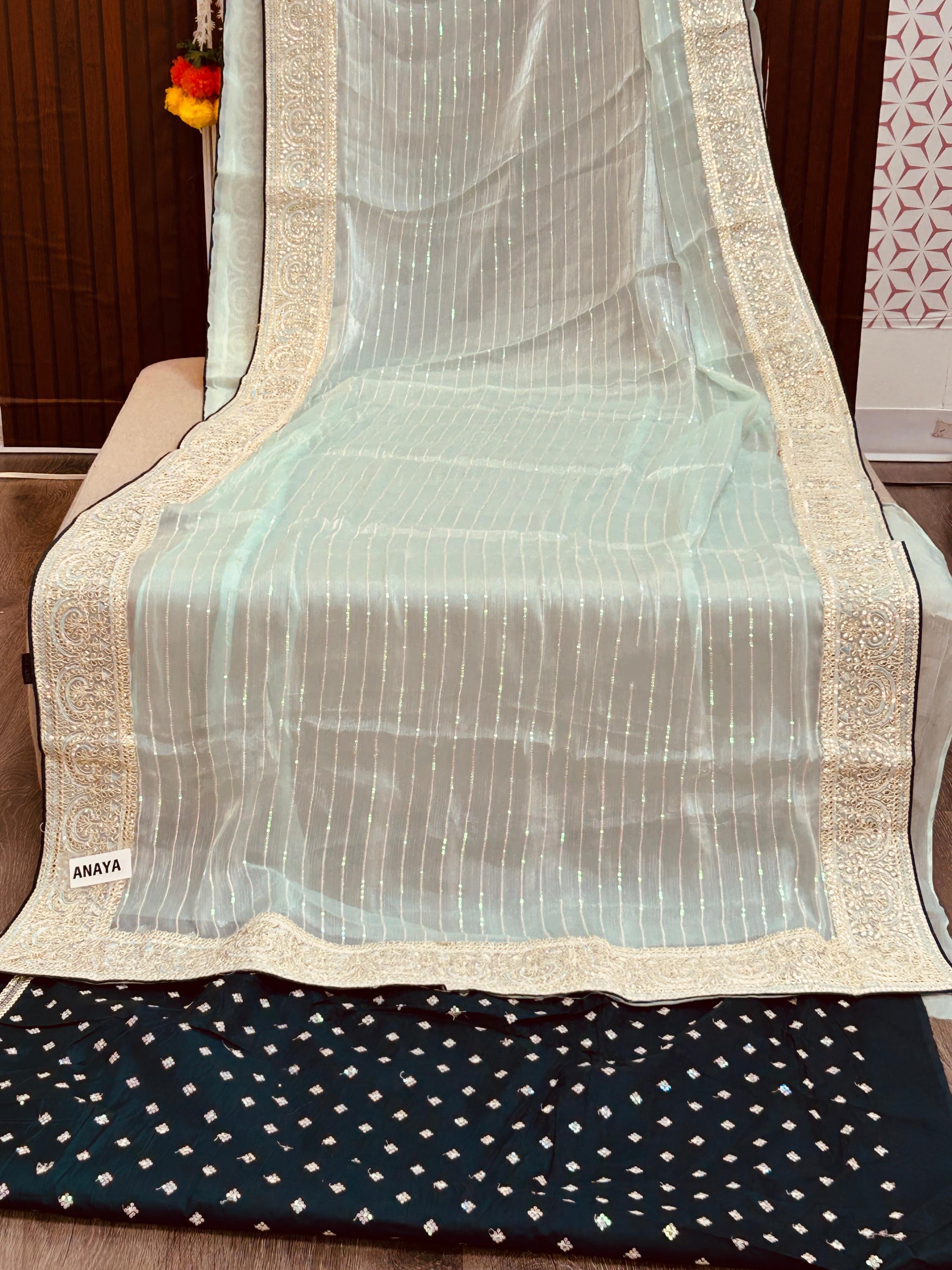 Tissue silk saree with contrast blouse piece